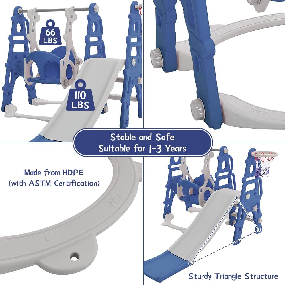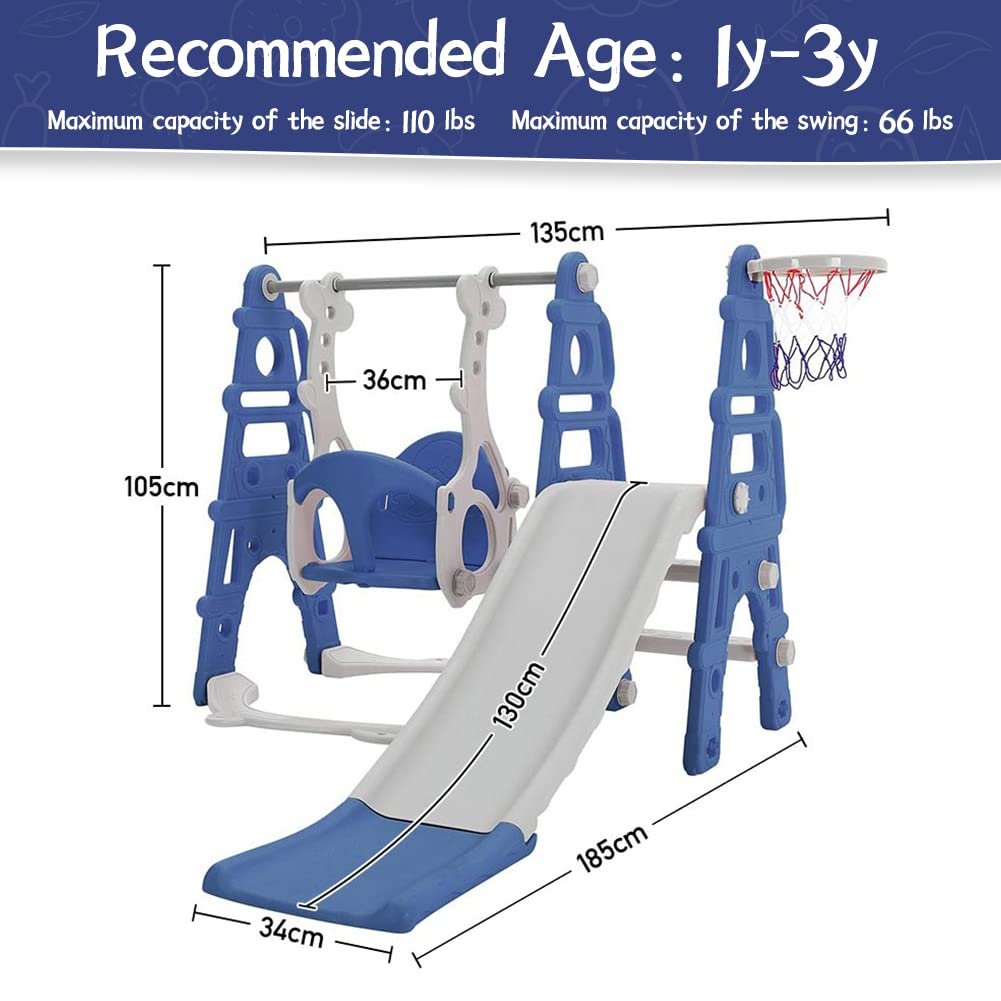 - 4 in 1 Fun: This all-in-one playset includes a smooth slide, climbing frame, swing, and a basketball hoop, providing hours of fun and physical activity.