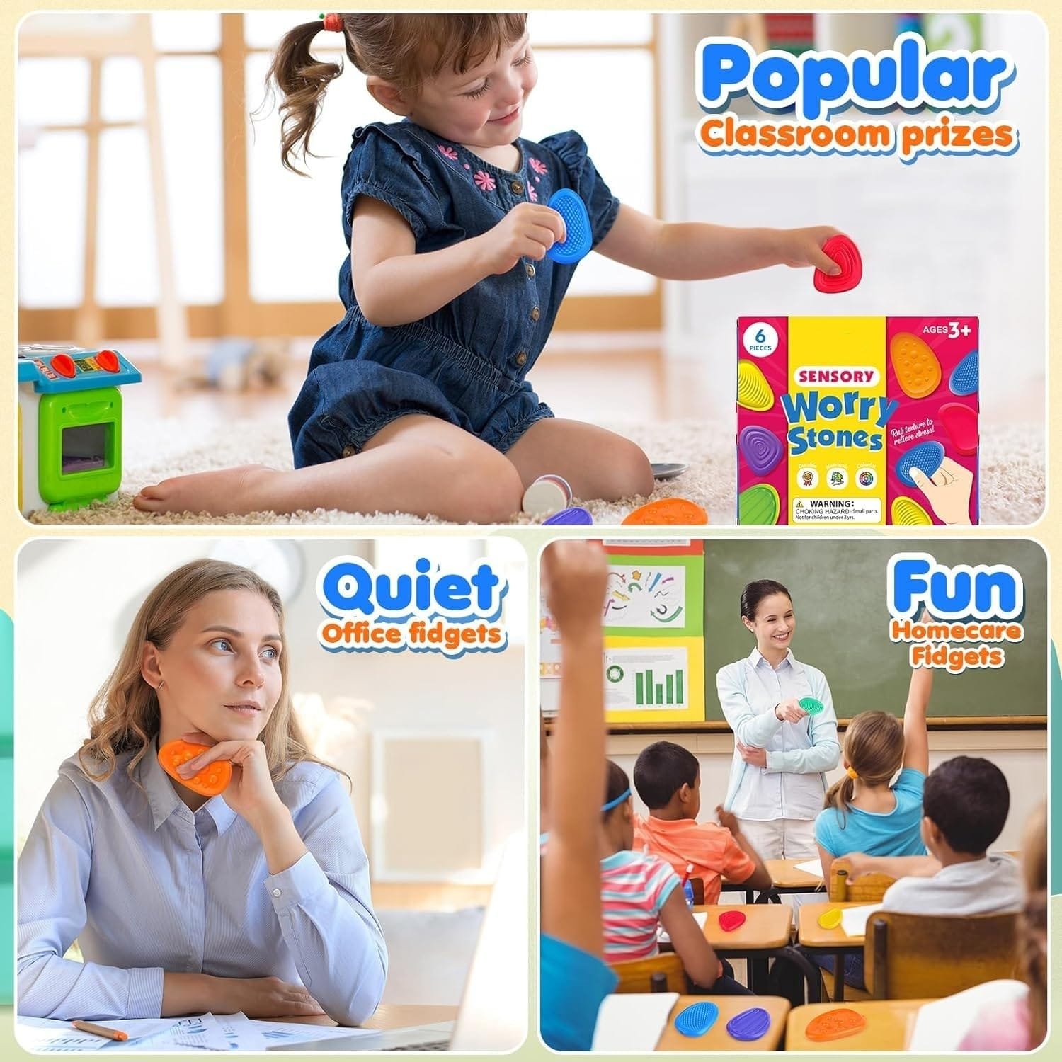 Unlock the calming power of tactile play with our Fidget Toys Sensory Stone for Kids. This delightful 6-pack of textured soft worry stones is designed specifically for children aged 3 years and up, making them perfect for kids with autism, ADHD, or anyone in need of a little stress relief.