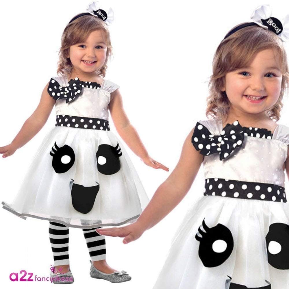 Transform your little one into the cutest ghost at any birthday or Halloween themed party! This delightful costume features a charming dress with an attached bow and headpiece, ensuring she’ll steal the show. Don’t miss out—check availability and secure the perfect size for your little ghoul today!