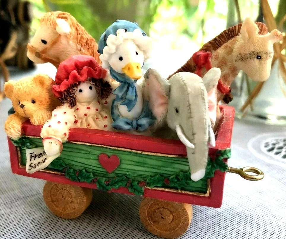 The Rolling Along w/Friends and Smiles figurine features an adorable ensemble of teddy bears joyfully riding in a whimsical toy car/train. Each bear radiates personality and charm, making it a heartwarming addition to your collection or a perfect gift for someone special.