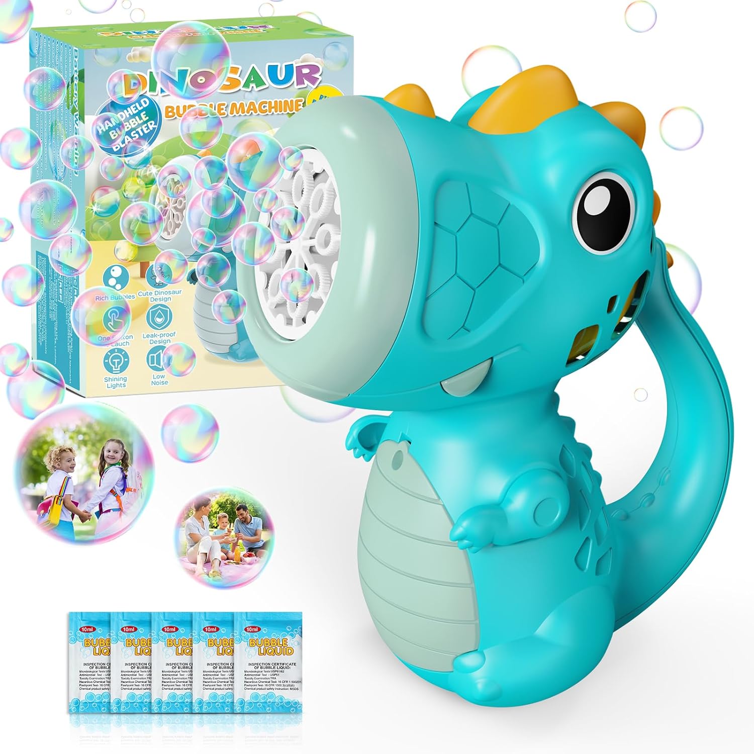I recently ordered this Dinosaur Bubble Machine for the kids to enjoy in the garden now that the weather is nice, and they have already had a blast with it. The dino is simple to set up: just insert 4 AA batteries (unfortunately, not included), unscrew its stomach to access the bubble container, fill it with bubble solution and water, then screw it back on. While kids might need help with this step, once it’s done, simply press the switch and watch as bubbles flow from the dino’s mouth, accompanied by an LED light effect that looks fantastic at night. The bubble machine can stand on its own or be carried around by the handle, allowing kids to run and play with it. Really pleased to find that this came with 5 packs of bubble solution so should keep us going for a while before i need to order some more. Overall a great novelty bubble machine and would recommend.