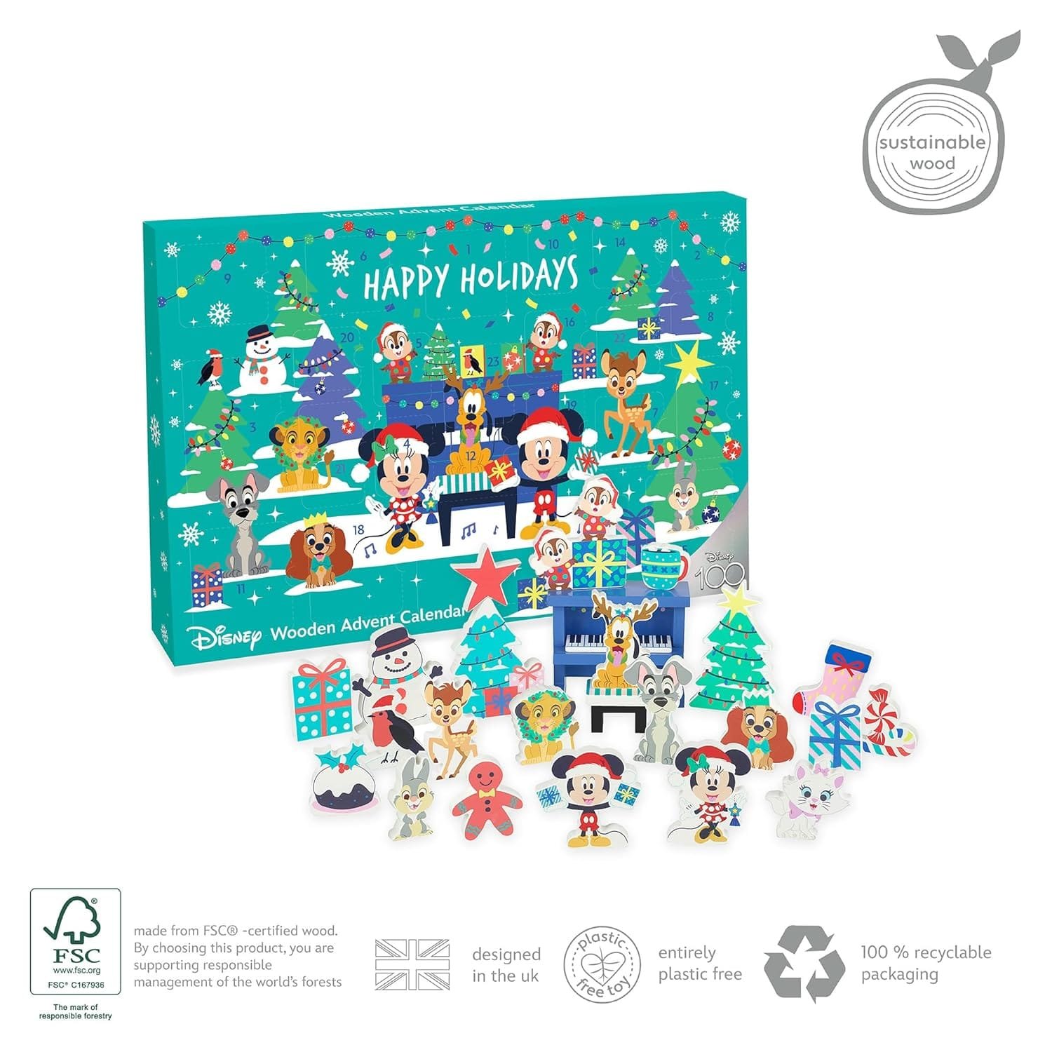 This wooden advent calendar is beautifully crafted with vibrant, non-toxic paint. The design is charming, and the inclusion of various Disney characters makes it visually appealing to kids. It’s made from sustainable wood, which is a significant plus for environmentally conscious parents.