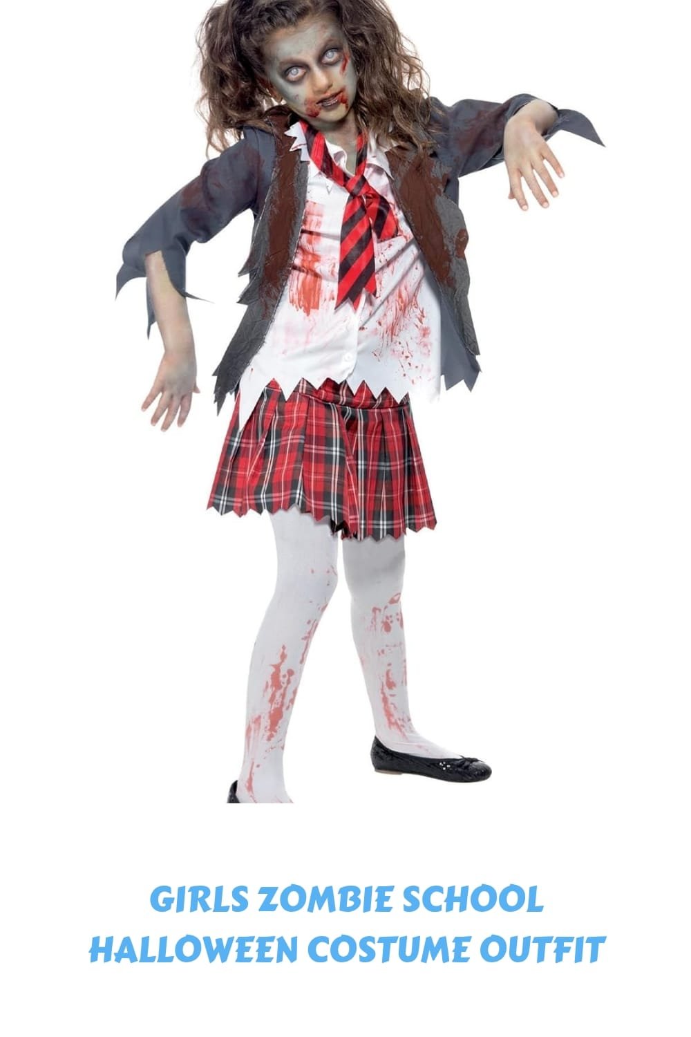 Transform your little one into the ultimate fright with our Girls Zombie School Girl Halloween Costume! This eerie ensemble includes a grey skirt, jacket, mock shirt, and tie, perfect for creating a chillingly cute look.
