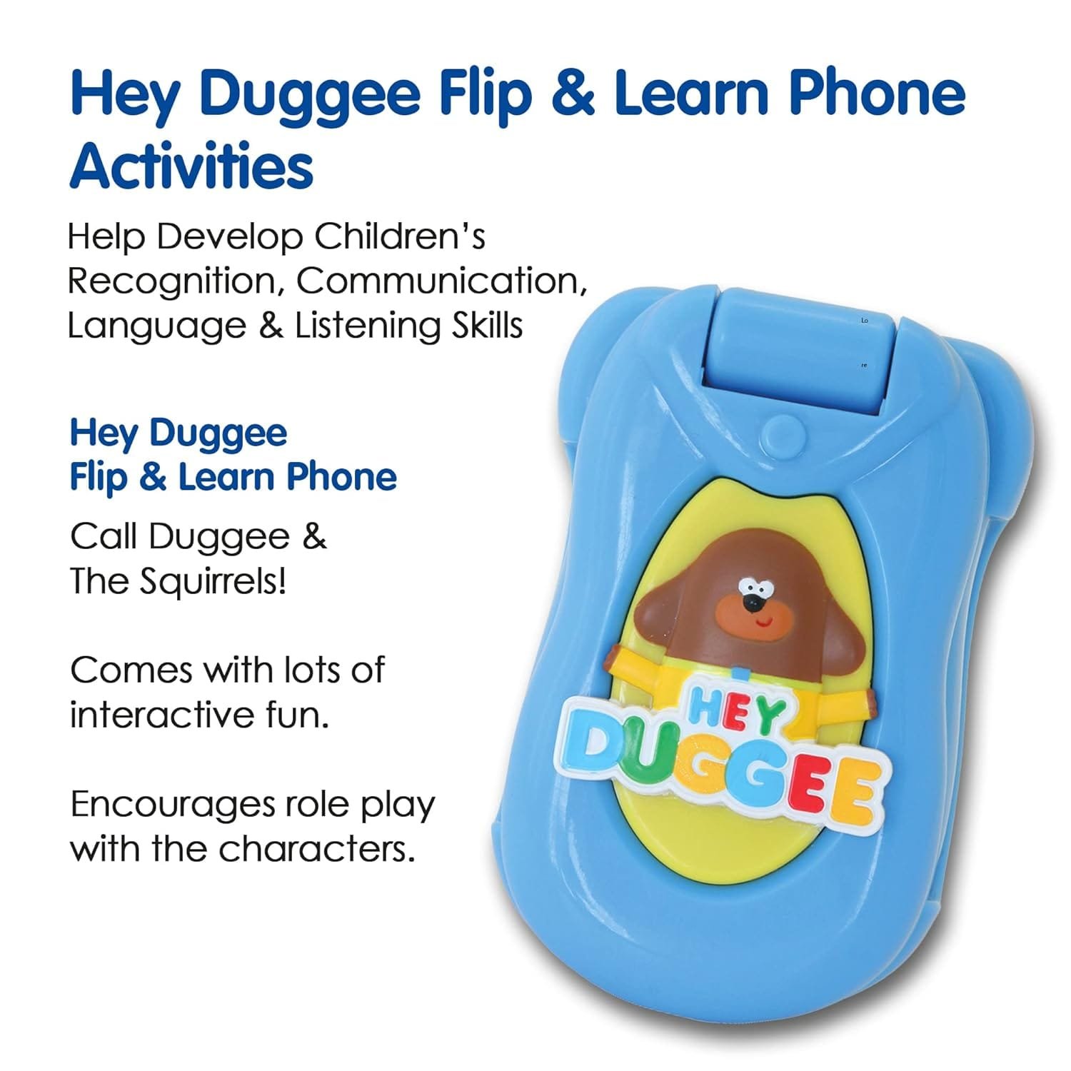 Why Choose Hey Duggee?With the Flip & Learn Toy Phone, your child will not only have fun, but they will also embark on a journey of learning that is crucial for their early development. The cheerful design and interactive features make it an appealing choice for both kids and parents alike.