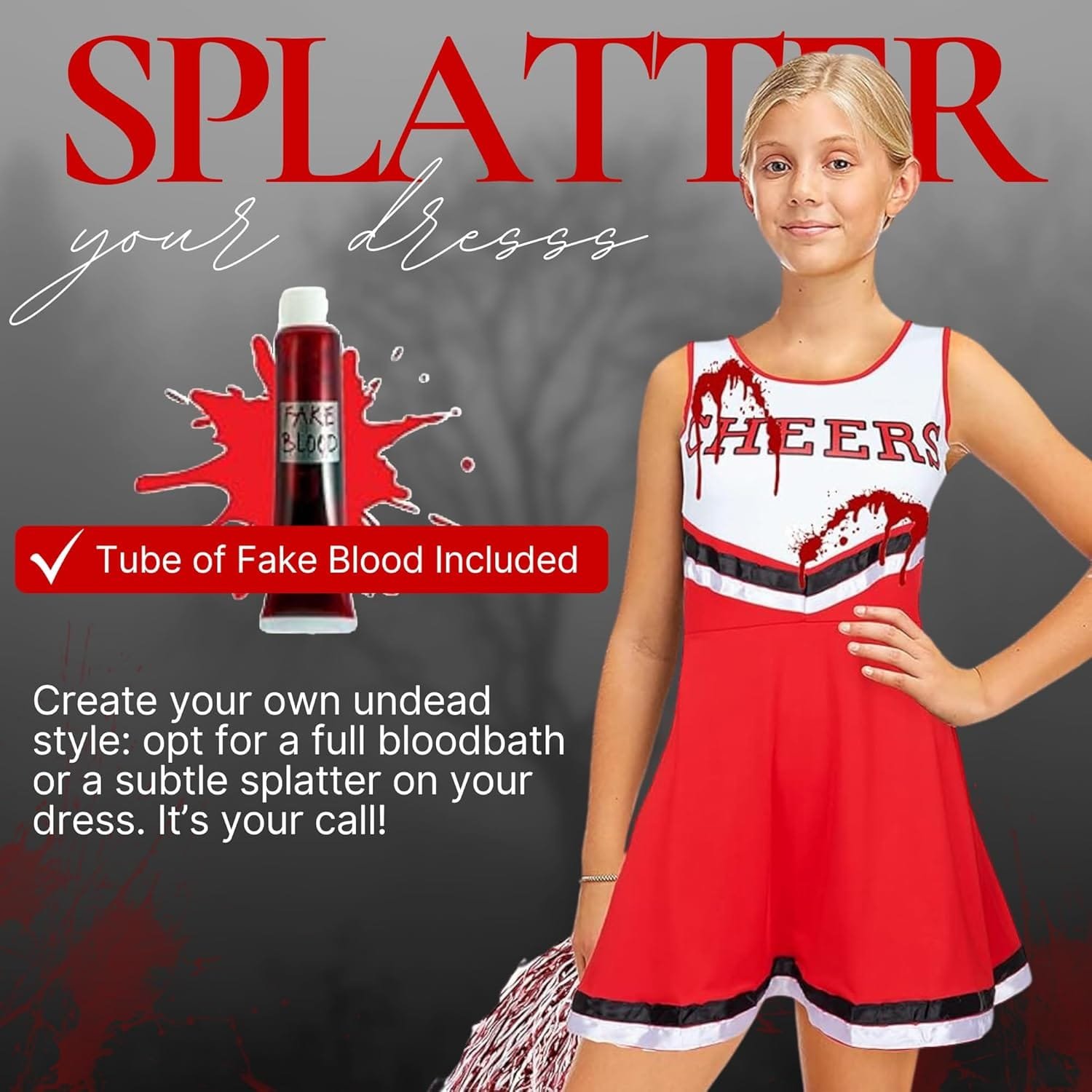 Transform your little one into the ultimate zombie cheerleader with our REDSTAR Kids Zombie Cheerleader Costume! With customizable options and included pom poms, they can create the perfect spooky look!