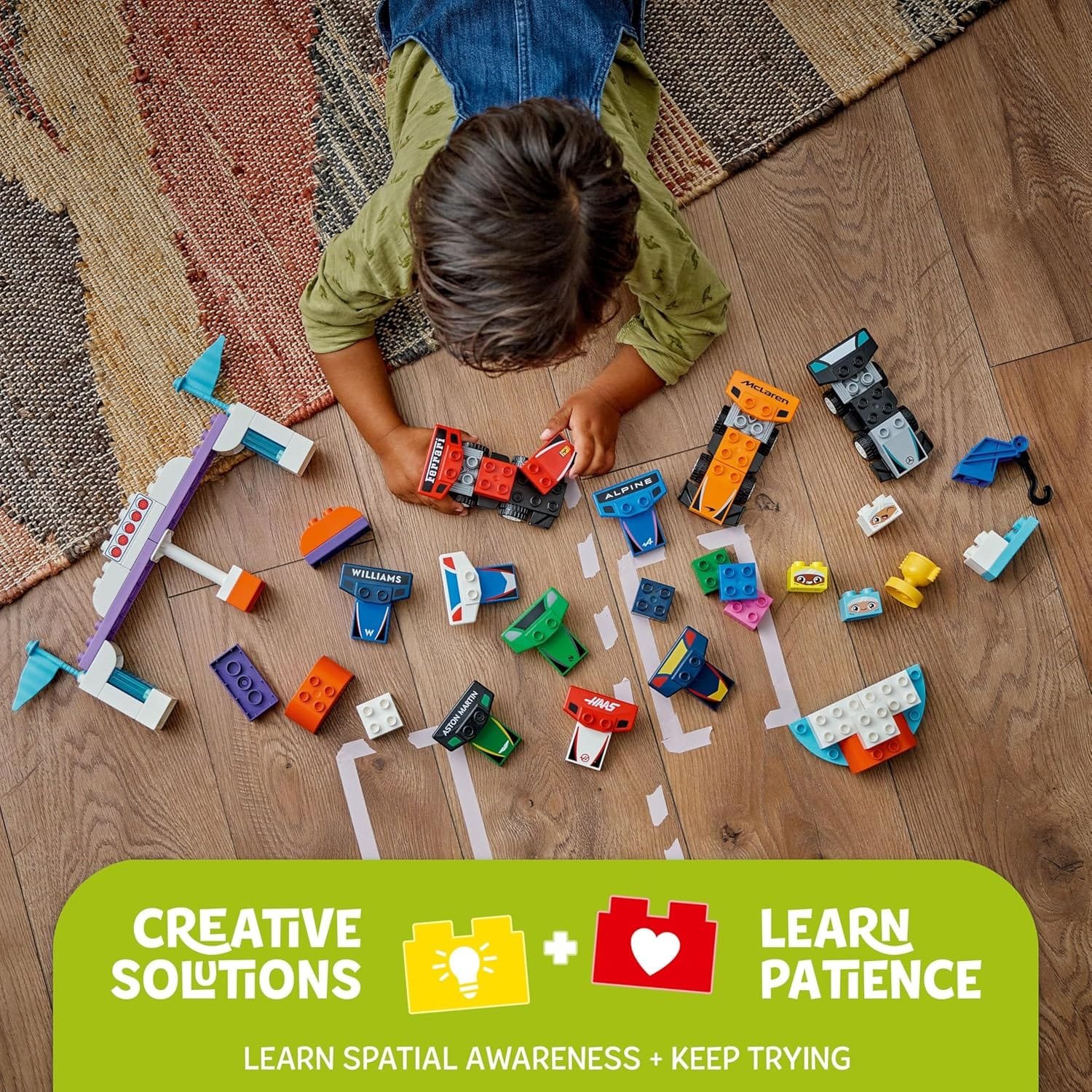 LEGO DUPLO sets are specially designed for younger children, with larger blocks that are safe and easy to handle. This F1 Team Race Cars & Drivers set not only entertains but also provides a foundation for learning essential skills that will benefit your child throughout their life.