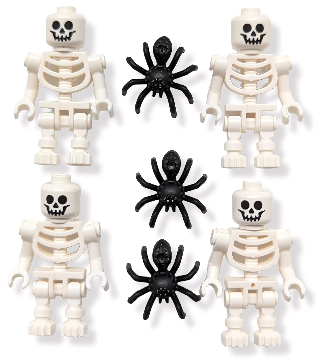 LEGO Accessories – Spooky Halloween Skeleton Minifigures (Pack of 4) with Extra Spiders