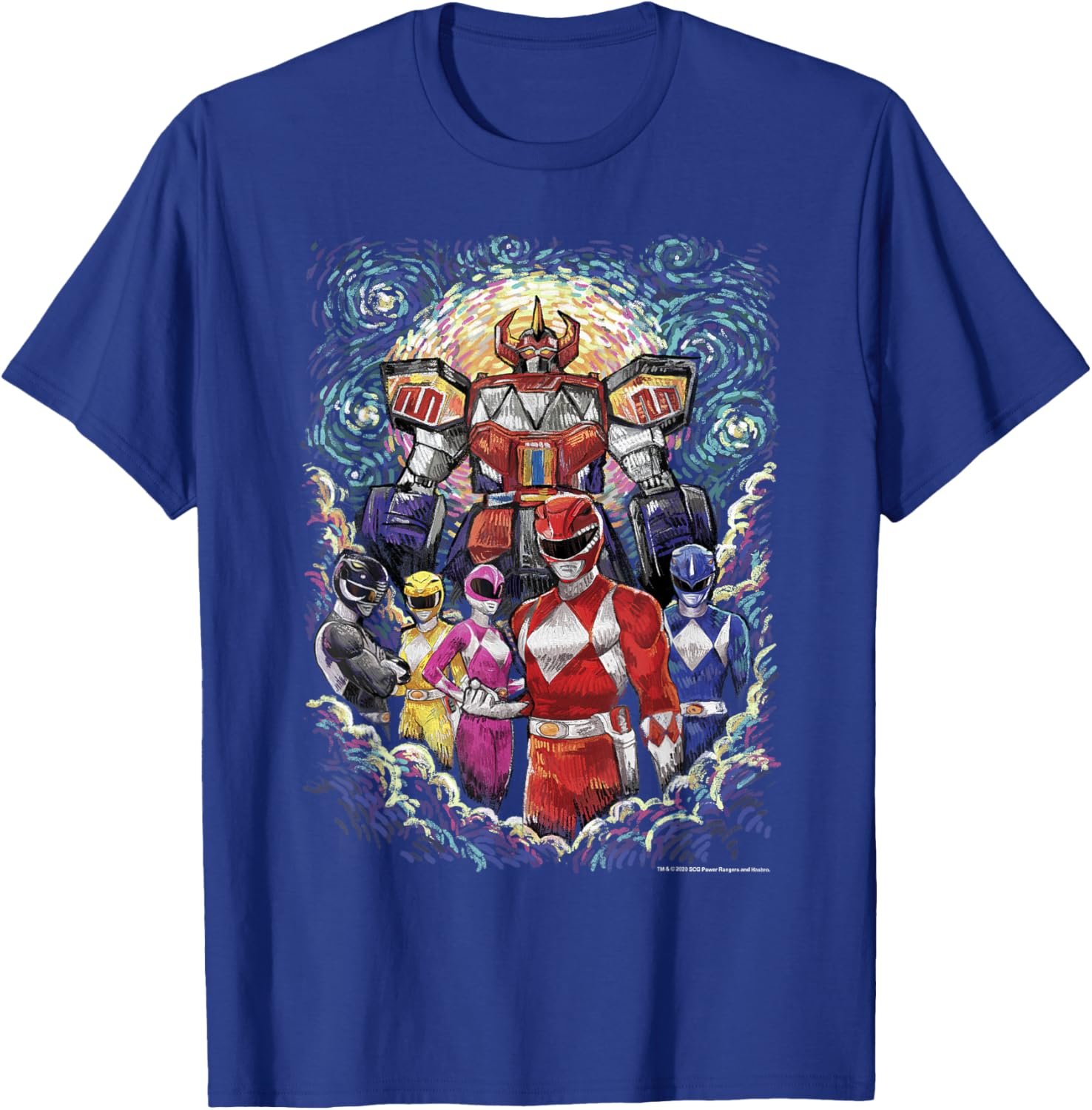 Embrace your passion for the Power Rangers and art with this one-of-a-kind t-shirt. Whether you’re attending a convention, casual outings, or just lounging at home, the Power Rangers Mighty Morphin’ Megazord Starry Night Poster T-Shirt is sure to turn heads and spark conversations.