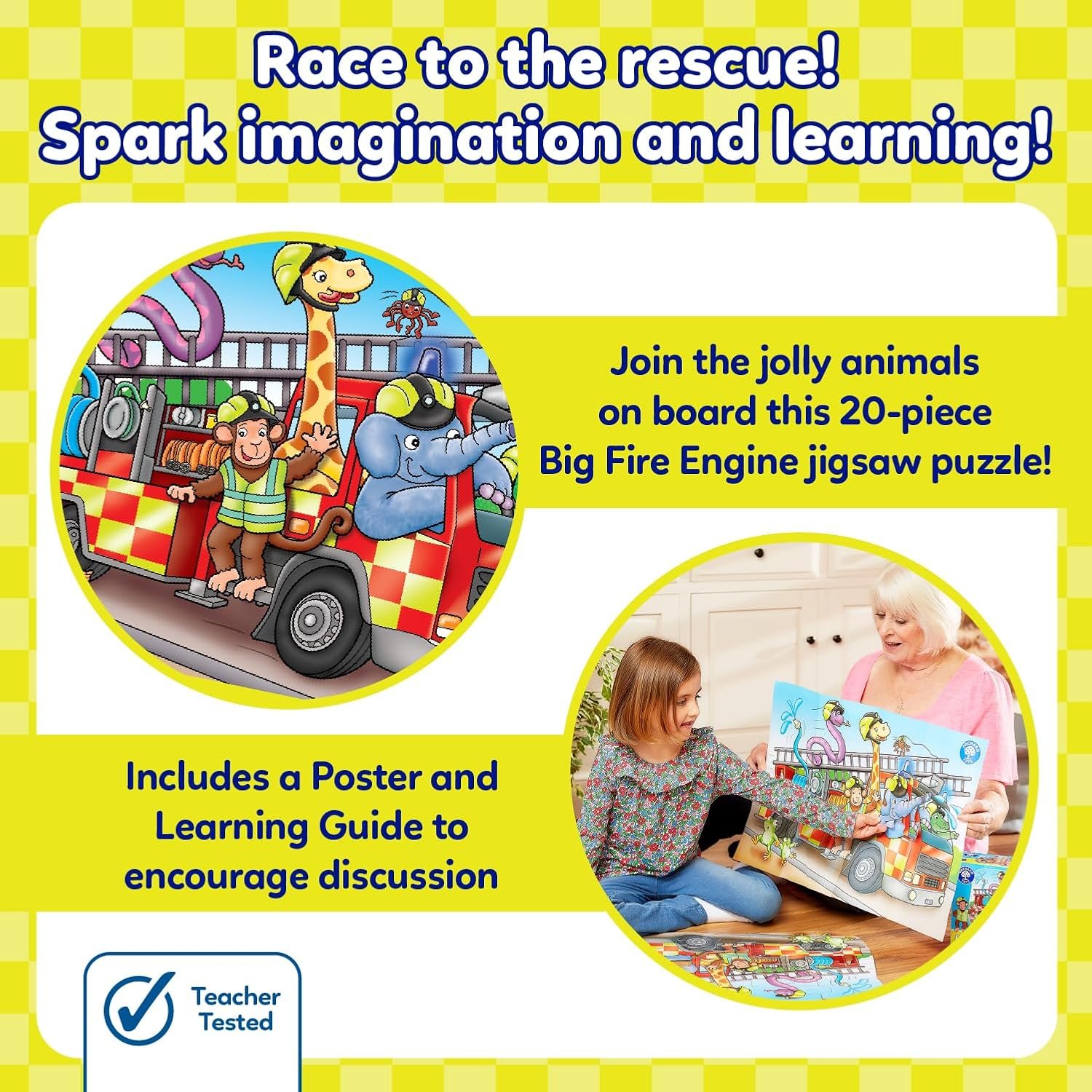 🌟 Order now and watch as they piece together not just a puzzle, but a world of curiosity and creativity! Plus, enjoy the included poster and learning guide to extend the fun! Don’t miss out—get your Big Fire Engine Puzzle today!