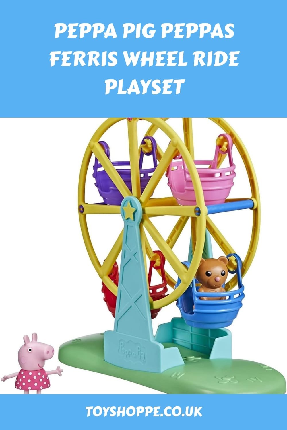 Bring home the joy of Peppa Pig today and watch your child’s creativity soar with the Pep Peppas Ferris Wheel Ride Playset!