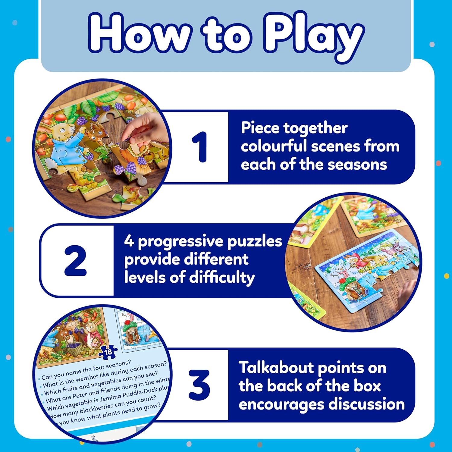 Orchard Toys is renowned for creating high-quality educational games and puzzles that spark creativity and imagination in children. The Peter Rabbit™ 4-in-a-box Puzzles not only entertain but also encourage cognitive development and problem-solving skills.