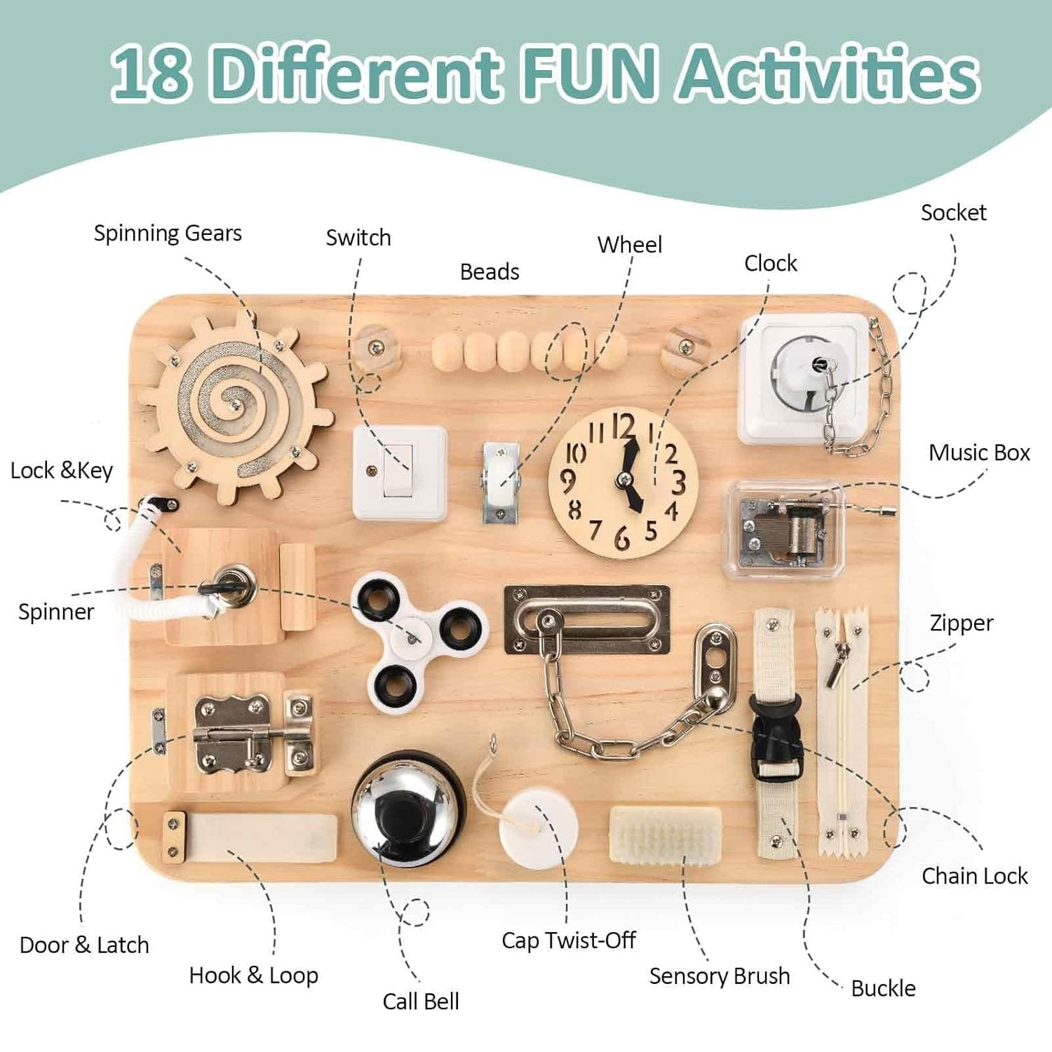 - Engaging and Fun: Brightly colored and interactive, this busy board keeps toddlers entertained while they learn.