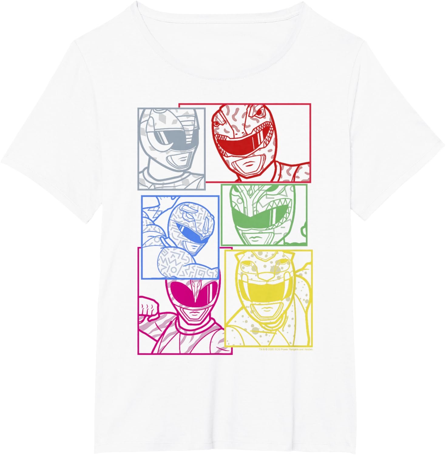 Be part of the Power Rangers legacy and express your fandom with pride! Grab your Power Rangers Group Shot Color Silhouette Line Art Panels T-Shirt today and transform your wardrobe into a showcase of heroism!