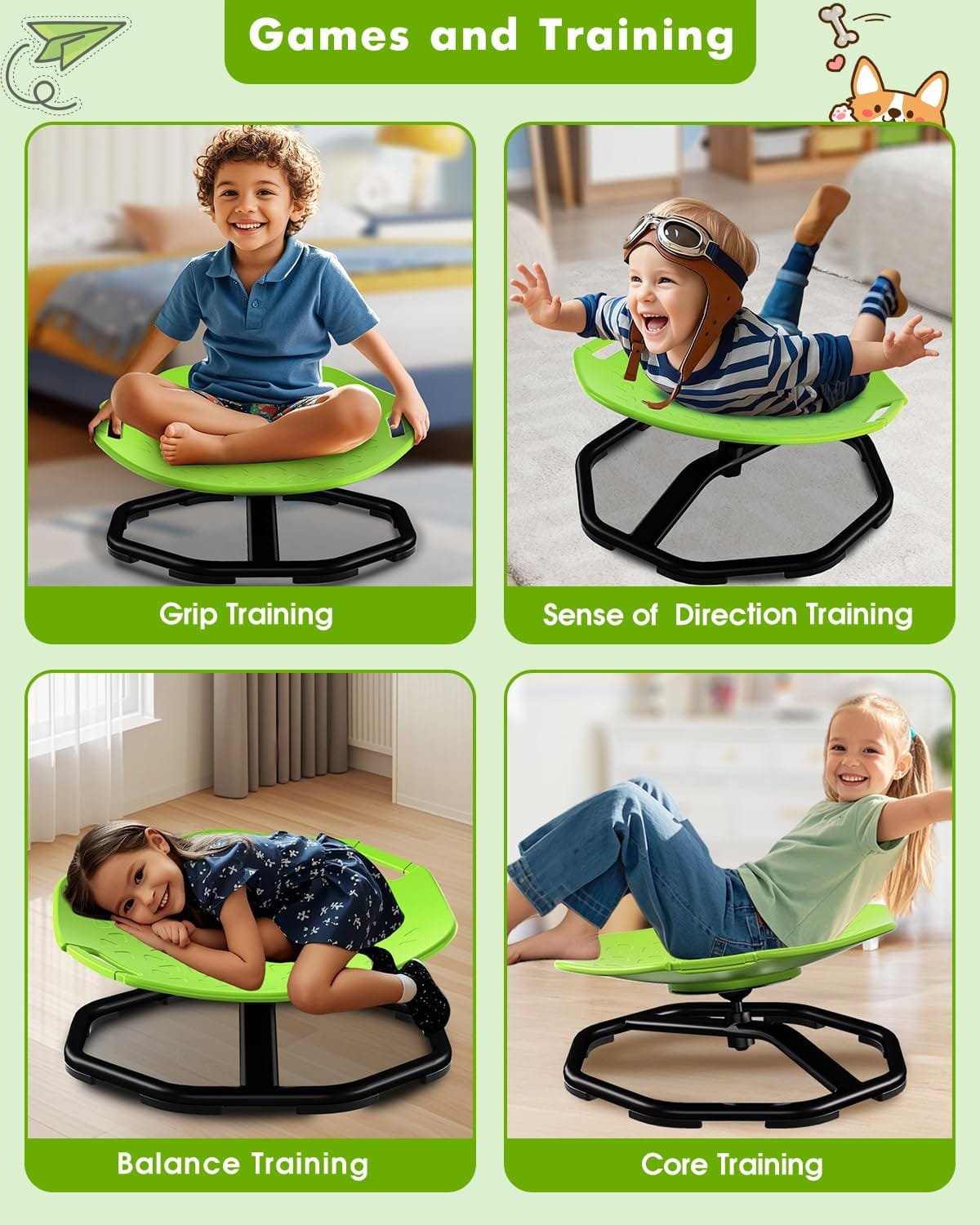 This spinning chair is more than just a toy; it’s a tool for development and joy! By encouraging movement, it helps children build physical skills while providing a comforting sensory experience. The bright green color and fun design make it an attractive addition to any play space.