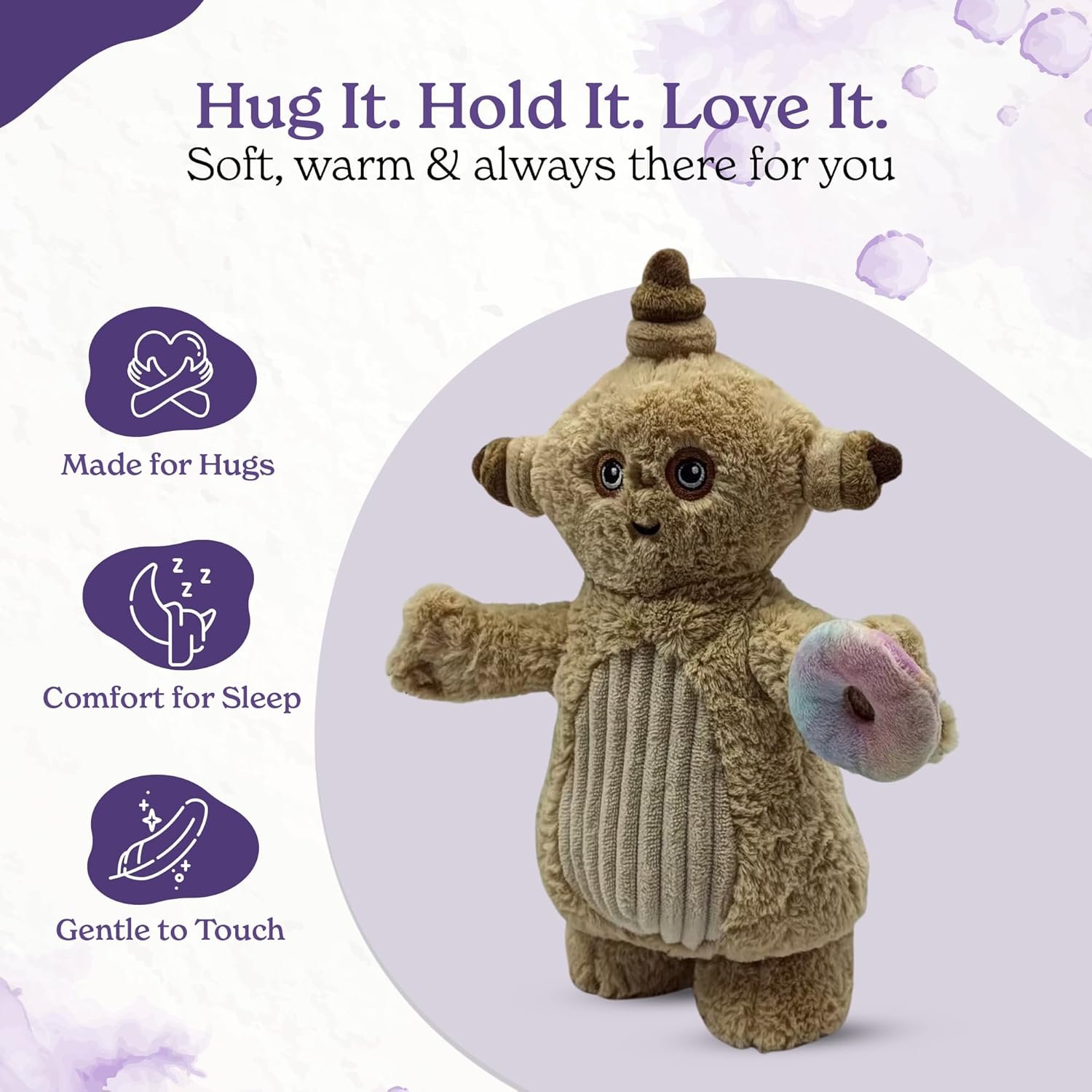 • Gently Scented: Infused with a subtle lavender aroma, this plush toy provides a delightful scent that promotes relaxation and a restful sleep.