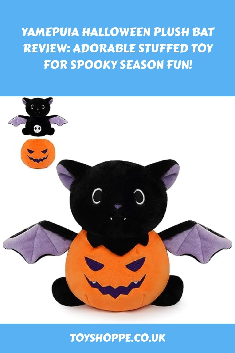 The Yamepuia Halloween Bat is categorized as a plush stuffed animal toy. Its primary use is to provide comfort and joy to children during Halloween. The product features a unique design that embraces the spirit of Halloween with its adorable appearance. It is decorated with removable pumpkin clothing, giving it a whimsical touch that children will love.